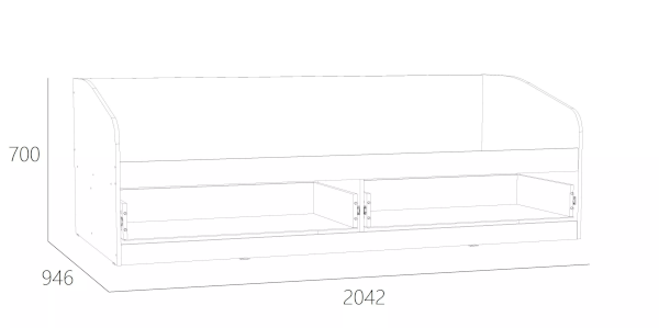 Вместительные бельевые ящики удобны для хранения постельных принадлежностей. Боковая спинка предотвращает истирание настенного покрытия. Кровать полностью безопасна для ребенка: у модели нет острых углов и накладных ручек на фасадах ящиков.