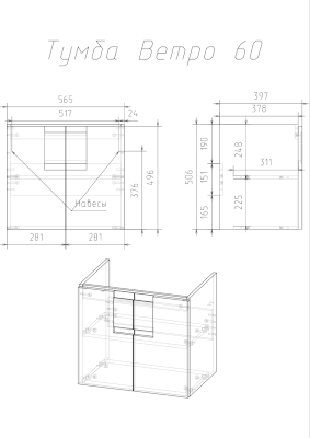 Тумба под раковину Vetro с дверцами (Veneciana)