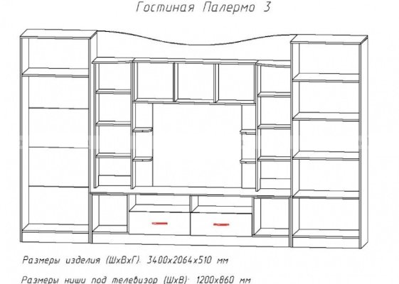 Ниша под ТВ (ШхВ): 1232х860 мм