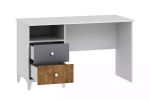 Данная модель дополнена небольшим модулем из пары выдвижных ящиков и открытой ниши. Вместительная полка под рабочей поверхностью прекрасно подходит для книг и тетрадей. Тумбу с ящиками возможно разместить как в левой, так и в правой части изделия в зависимости от предпочтений ребенка. Ящика с удобными ручками легко выдвигаются, предоставляя полный доступ к содержимому и позволяя быстро найти необходимый предмет.