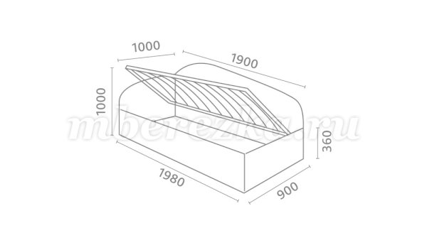 Каркас выполнен из ламинированной древесноволокнистой плиты. Механизм подъема кровати на газовых амортизаторах. Основание кровати представляет собой металлический каркас с ламелями, что является ортопедической конструкцией. Под ортопедическим основанием расположена ниша для белья, куда свободно войдут подушки, одеяло и прочие постельные принадлежности.