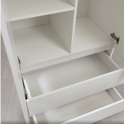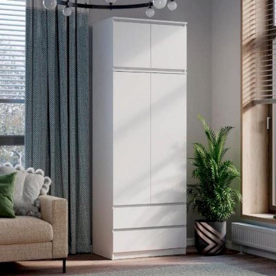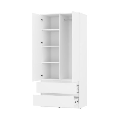 Шкаф двухстворчатый «Симпл» (ШК-03) — минималистичный двухстворчатый шкаф станет хорошим дополнением как к классическому, так и к современному интерьеру. В двух выдвижных ящиках удобно хранить обувь или белье. За распашными дверцами размещена штанга для хранения верхней одежды.