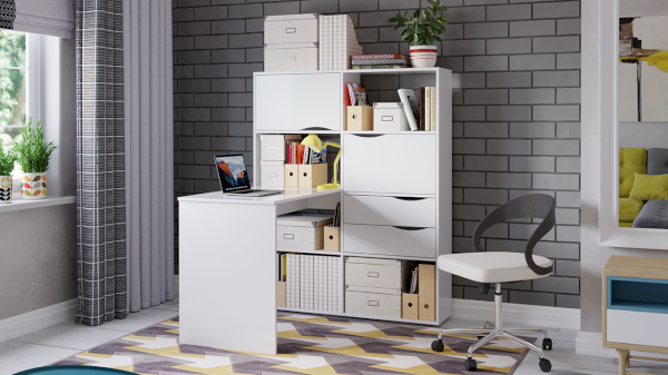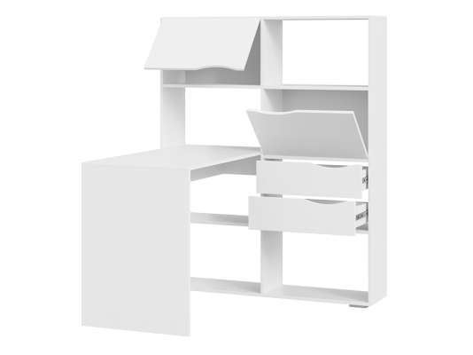 Стол письменный тип 7 станет вашим помощником в систематизации канцтоваров и других необходимых принадлежностей. Открытые полки обеспечивают хороший обзор и легкий доступ к книгам и учебникам, а за откидными фасадами можно скрыть наиболее важные предметы.