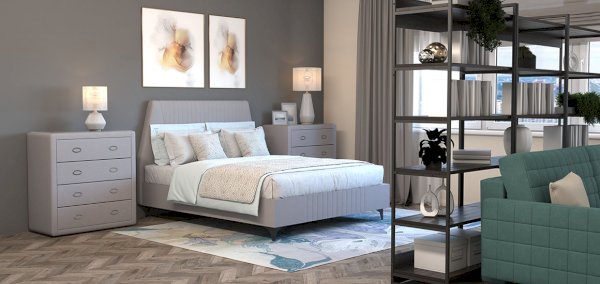Кровать Грейс впишется в любой современный интерьер и станет любимым местом в доме. Ее особенности: высокое и мягкое изголовье со стильной стёжкой, интегрированный матрас с настраиваемой жесткостью.