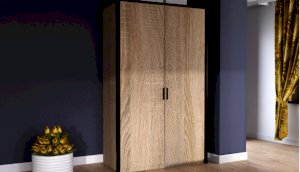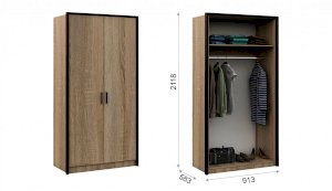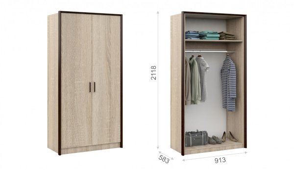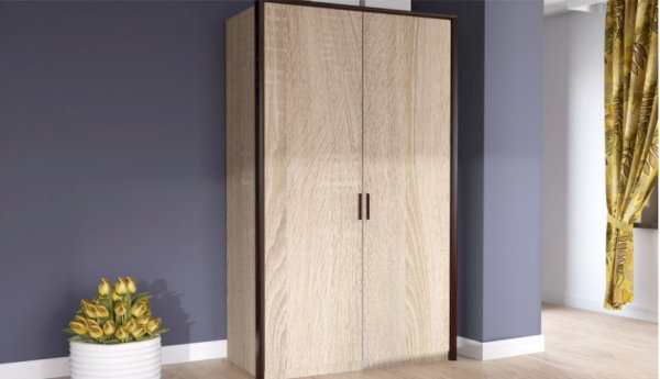 Удобный и вместительный двухдверный шкаф, внутреннее наполнение которого, позволяет хранить верхнюю одежду, постельное белье, обувь и другие необходимые вещи. Профиль из МДФ 22мм по внешним углам со скругленными краями – максимально безопасное использование мебели. Детали цвета венге подчеркивают древесную текстуру и рисунок светлого дуба сонома, придает эффектный вид. Мебель выполнена из экологичных материалов.