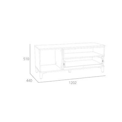 Тумба оснащена полкой за распашной дверкой и ящиком, который выдвигается плавно и бесшумно благодаря шариковым направляющим. Открытая ниша может быть собрана как на правую, так и на левую стороны, и в ней можно удобно расположить книги или элементы декора, а высокие опоры придают внешнюю легкость и обеспечивают быстрый и легкий доступ во время уборки.