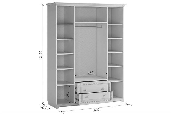 | Наполнение шкафа | выдвижные ящики / зеркало / штанга |