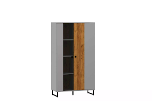 Коллекция БРУНО – это современный дизайн с характером, который отлично впишется в стиль лофт. Цвет платиново-серого и золотого дуба гармонично подчеркнут контрастными элементами – стеклом в витринах, черными ручками и черными металлическими опорами.