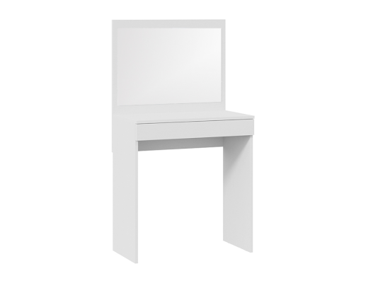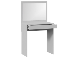 Несмотря на свои компактные размеры, туалетный стол имеет функциональный ящик с шариковыми направляющими для хранения парфюмерии, украшений и многого другого, достаточно вместительную столешницу, где можно разместить все необходимые аксессуары и полноценное зеркало. В этом туалетном столике нет ничего лишнего, только самое необходимое для уголка женской красоты.