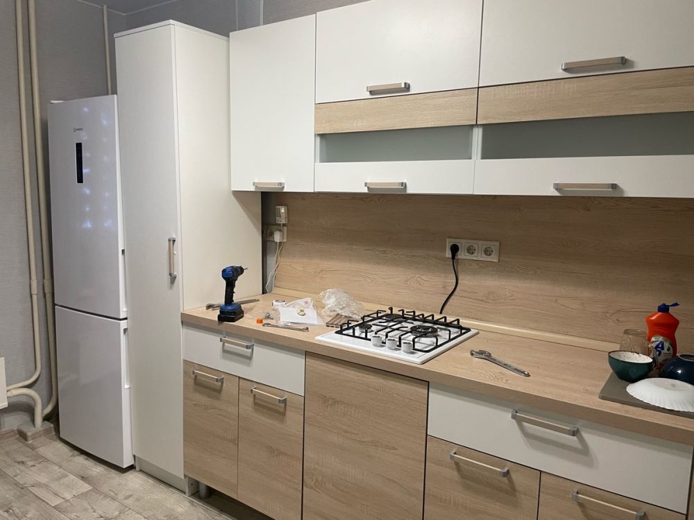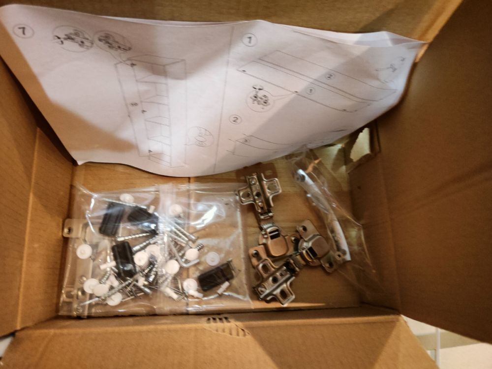 Отличный шкаф-пенал за свой бюджет. Комплектация - полная, включая конферматы , саморезы, гвозьди ,петли и тд . Доставка до двери (включая подъем на 5-ый этаж). По сборке без проблем собрал минут за 20. Единственное обклеил дверцу в черный глянец , чтоб более гармонично вписался на кухню.
