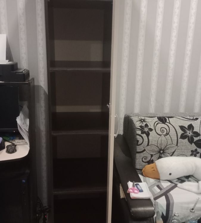 шкаф замечательный, отлично вписался в интерьер комнаты, компактный,но вместительный, без сколов,собрали быстро