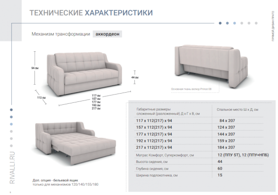 Ширина спального места, см 184 / 159 / 144 / 124 / 84