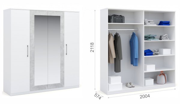 Классический распашной четырехдверный шкаф выполнен в стиле минимализм: строгие линии, идеальные пропорции. Нейтральные цвета шкафа подойдут для любого стиля интерьера, их можно сочетать со множеством ярких и насыщенных оттенков тем самым полностью преображая пространство. Зеркала на центральных фасадах сделают спальню светлее и просторнее. Идеально компонуется со всеми модулями системы Аврора. Мебель выполнена из высококачественных материалов.