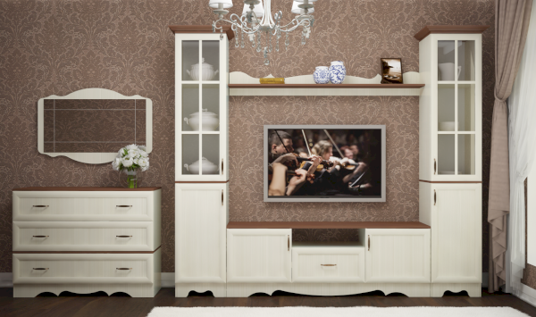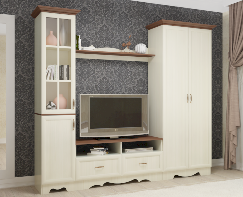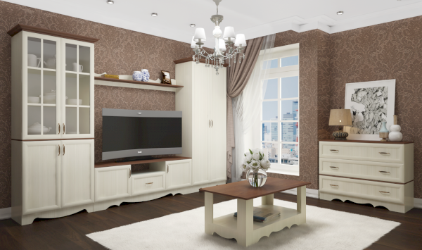 Коллекция Латте в классическом стиле станет достойным украшением Вашего дома. Использование модульных систем даст возможность не только разумно распорядиться жилым пространством, но и поможет создать интерьер, который полностью удовлетворит ваши эстетические потребности. Карнизы и рамочный профиль на фасадах изготовлены из МДФ, вкладки на стеклах - МДФ. Все столешницы обработаны кромкой 2 мм.