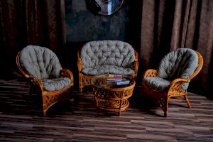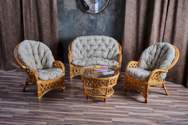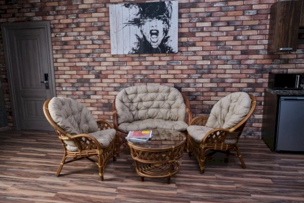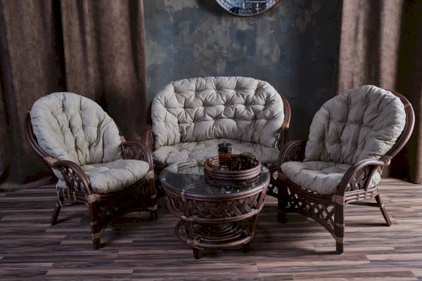 Стильный мягкий комплект для гостиной с 2-х местным диваном и высокой спинкой.