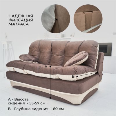 Разложенный в кровать диван «Клиффорд» очень комфортен для сна взрослых. Спать можно как с периной – для тех, кто любит спать на мягком, так и без – для тех, что предпочитает более жесткое спальное место. Если перину положить на пол, то получается еще два спальных места.