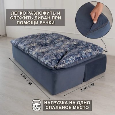 За счет того, что диван без каркаса и механизма, его легко самостоятельно перевезти, например на дачу. И в отличие от всех стандартных диванов, он не требует сборки. Такого набора достоинств нет ни у одного обычного дивана!