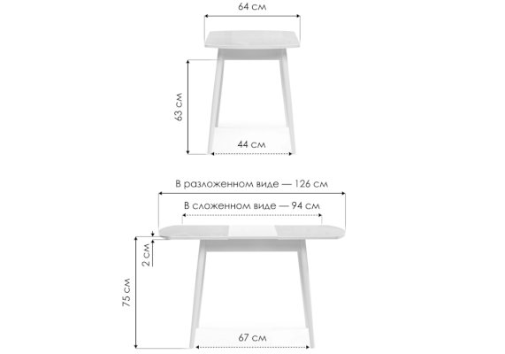 Длина разложенного столика, мм 1260