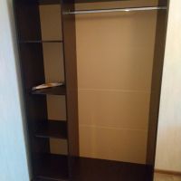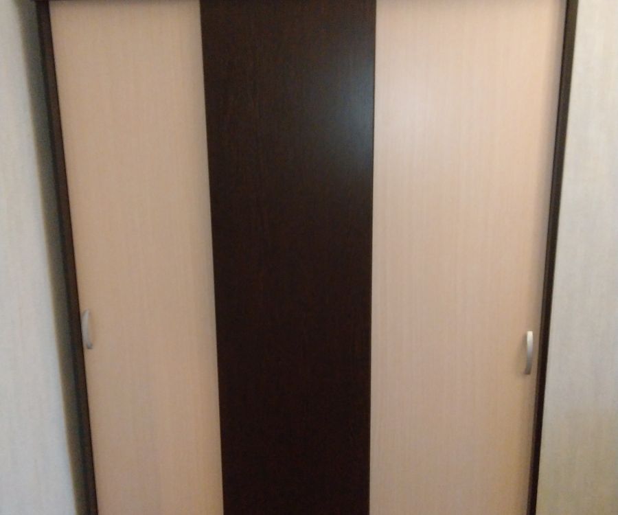 Шкаф-купе Бассо имеет хороший дизайн с зеркалом. Сочетание цвета Венге и дуба соответствует моему вкусу. На мой взгляд, довольно вместительный для небольшой квартиры, в то же время занимает немного места и гармонирует со светлой прихожей. Из недостатков: задняя стенка составляется четырьмя тонкими листами картона или очень тонкого ДСП. По инструкции ее нужно прибивать молотком, что не очень хорошо для конструкции такого хрупкого шкафа. Возникли сложности с плотность прилегание одной двери к боковой стенке. Детали, с помощью которых крепятся верхние ролики, неудобно прикрепляются к фасаду толстыми болтами. Сложно добиться ровного ровного положения роликов на фасаде. Зеркало пришлось клеить самостоятельно. Это не порадовало. В общем, наверное, шкаф хороший за такую цену и для тех, у кого не слишком дорогой ремонт в квартире.