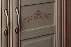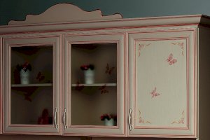 • Классическая роспись из цветов и бабочек на фасадах и столешницах делает мебель уникальной