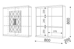 • За каждым распашным фасадом по 2 съемные полки ЛДСП.
