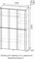 • Размер:ШхВхГ 1306 х 2265 х 547 мм