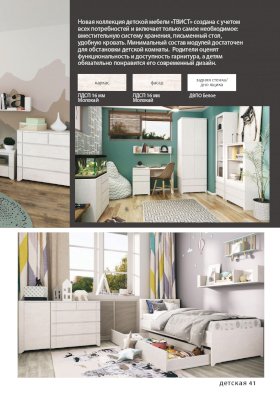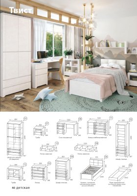 Новая коллекция детской мебели «Твист» создана с учетом всех потребностей и включает только самое необходимое: вместительную систему хранения, письменный стол, удобную кровать. Минимальный состав модулей достаточен для обстановки детской комнаты. Родители оценят функциональность и доступность гарнитура, а детям обязательно понравится его современный дизайн.