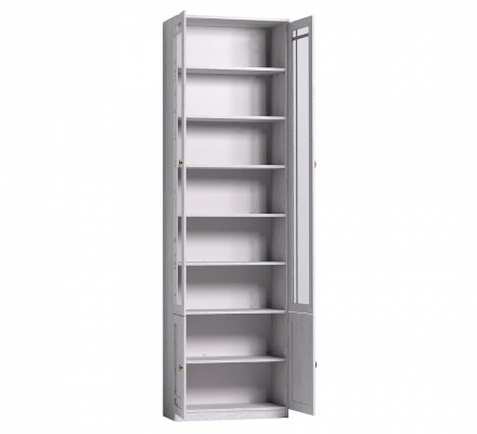 Распашной книжный шкаф можно установить в комнату с высотой потолка не менее 240 см. Высота полок во всех шкафах для книг регулируется, для этого необходимо только установить полкодержатели в подготовленные отверстия. Это позволит поставить на полки книги и альбомы разного формата. Нагрузка на полку не должна превышать 13 кг. Тонированное стекло защищает книги от вредного воздействия солнечных лучей и убережет их от пожелтения. Книжный шкаф обязательно крепится к стене за подвесы и межсекционной стяжкой с другими шкафами в наборе. Библиотека выпускается без выборки под плинтус, чтобы каждый мог прирезать плинтус индивидуально. В противном случае остаются неаккуратные зазоры между модулем и стеной.