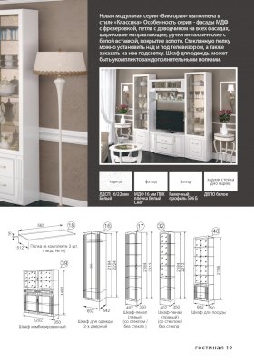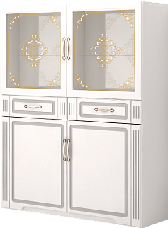 Модульная серия «Виктория» выполнена в стиле «Классика». Особенность серии - фасады МДФ с фрезеровкой, петли с доводчиком на всех фасадах, шариковые направляющие, ручки металлические с белой вставкой, покрытие золото.