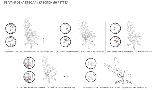 Модель оснащена механизмом качания «топ-ган» с регулировкой под вес пользователя и возможностью фиксации в рабочем положении.