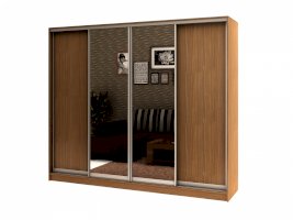 корпус - Дуб Феррара, фасады - Дуб Феррара (2 шт.) и зеркало (2 шт.), рамка двери и треки - Серебро матовое.