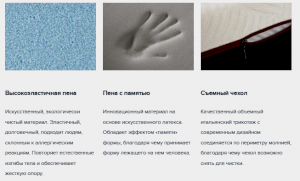 Полиуретановый матрас на основе чередующихся слоев высокоэластичных пен различной плотности и материала с эффектом памяти. Благодаря высокой жесткости полиуретановый матрас обладает ярко выраженным ортопедическим эффектом. Чехол матраса выполнен из комфортного трикотажа.
