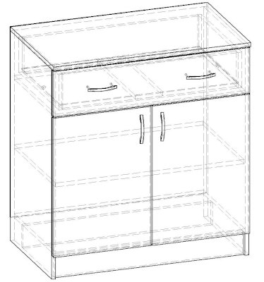 • Корпус, полки и фасады изготовлены из ЛДСП 16 мм с кромкой ПВХ 0,4 мм.