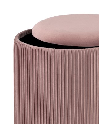 Лаконичная модель пуфа в обивке из мягкого велюра, которая дополнит интерьер в современном стиле. Основание выполнено из металла в золотом цвете. Обивка красиво украшена декоративными оборками. Под сидением имеется ящик для хранения различных мелочей. В основании предусмотрены специальные подпятники, которые делают пуф более устойчивым и предотвращают скольжение.
