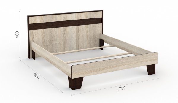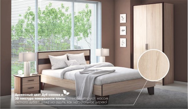 Кровать Эшли - выполнена в стиле минимализм: предельная лаконичность и простота, строгие геометрические очертания. Изголовье выполнено из ЛДСП с декоративной вставкой темного цвета, по периметру - контрастный профиль из МДФ. Сочетание темных ножек трапецевидной формы и кромки изножья цвета венге со светлым корпусом кровати придает кровати легкость и выразительность.