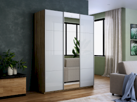 Шкаф-купе 3-х дверный Прайм Белое стекло/Зеркало/Белое стекло 1800х2300х570 мм Сонома