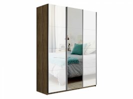Шкаф-купе 3-х дверный Прайм Белое стекло/Зеркало/Белое стекло 1800х2300х570 мм Крафт табачный
