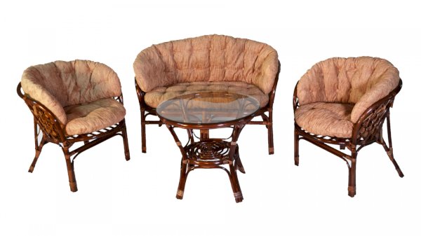 Удобное кресло из натурального ротанга с мягкой подушкой.
