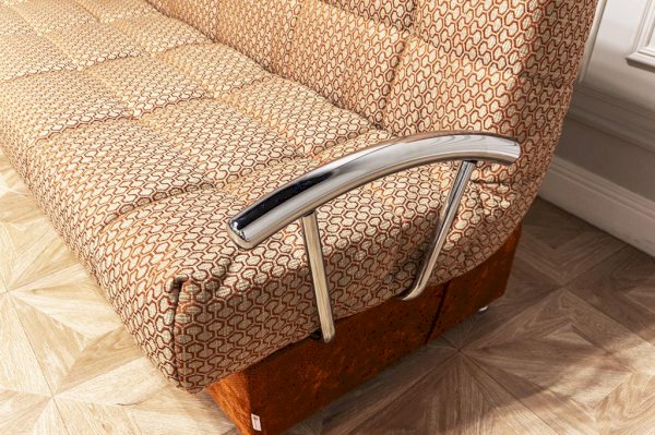 Отличительной чертой дивана являются стильные хромированные металлические подлокотники, специально подобранные под данную модель. Можно установить один или два подлокотника или вовсе использовать диван без них, не потеряв в комфорте.