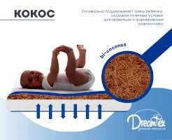 Идеально подходит для большой трансформации кроватки Dreams Smart. Трехслойный матрас позволяет регулировать жесткость спального места, а натуральные материалы (кокос, латекс) создадут оптимальный ортопедический эффект от эксплуатации. Кокосовая койра – качественный, натуральный, износостойкий материал, используемый в матрасном производстве в качестве жесткого наполнителя. Натуральный латекс – это природный материал, переработанный сок каучукового дерева. Данный материал экологически чистый, упругий и долговечный. Латекс обладает антибактериальными свойствами, не накапливает влагу, отлично дышит. Упругая структура наполнителя дает отличный ортопедический и анатомический эффект.