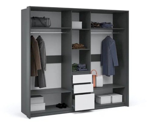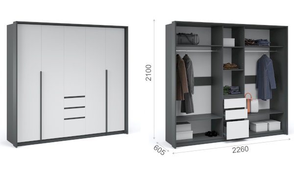 Функциональный распашной щкаф с массивными ручками контрастного цвета включает в себя вместительные полки и отделения со штангой, что позволяет создать систему для хранения вещей различного назначения. Встраиваемая в портал LED подсветка – оригинальное дизайнерское решение и дополнительный источник освещения. Современные цвета декора корпуса и белоснежный фасад добавят в жилое помещение света, уюта и комфорта. Идеально компонуется со всеми модулями системы Мишель.