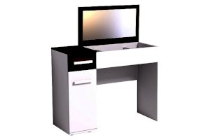 Простой с виду туалетный столик из коллекции Норвуд обладает интересной конструкцией. Откидная контрастная крышка стола скрывает нишу с органайзером для хранения мелких аксессуаров. На внутренней стороне крышки - зеркало, перед которым удобно наносить макияж и проводить косметические процедуры. Сбоку – отделение с полками за распашной дверцей и выдвижным ящиком, фасад которого выполнен из ЛДСП цвета Орех Шоколадный. Закрытый столик можно использовать для работы на ноутбуке или с документами. Модуль можно собирать как на левую, так и на правую сторону.