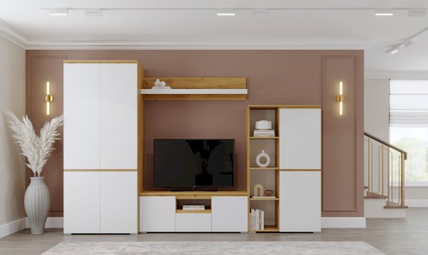 Применение интегрированной ручки на фасадах делает модель стильной и безопасной – дверцы и ящик открываются за профилированные выступы. Фасады обработаны кромкой 1 мм.