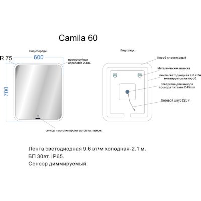 Светодиодное зеркало Camila (Veneciana) - за 15 564 руб. в Бердянске. Купите на сайте berdyansk.onlinemarketmebeli.ru или по телефону 8(800)505-30-63 уже сегодня! Уточнить наличие, комплектацию, актуальную цену можно бесплатно у менеджера ежедневно. Закажите Светодиодное зеркало Camila (Veneciana) до конца акции! Доступна покупка в кредит, рассрочку. Доставим со склада или на заказ.