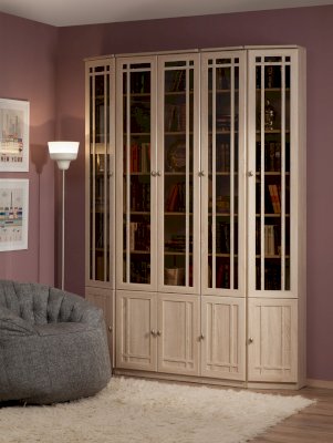 Благодаря модульности, библиотеку SHERLOCK можно расположить в Вашем домашнем кабинете, выбрав для компоновки именно те модули, которые Вам нужны. Письменный стол, расположенный у окна, сделает чтение и работу с документами максимально комфортным. В высоких изящных шкафах библиотеки SHERLOCK поместятся книги любого формата: от самых маленьких книг до больших иллюстрированных альбомов, поскольку Вы сами можете регулировать высоту полок. Тонированные стекла фасадов высоких книжных шкафов защитят книги от прямых солнечных лучей, пожелтения страниц, пыли и позволят без проблем найти нужную книгу.